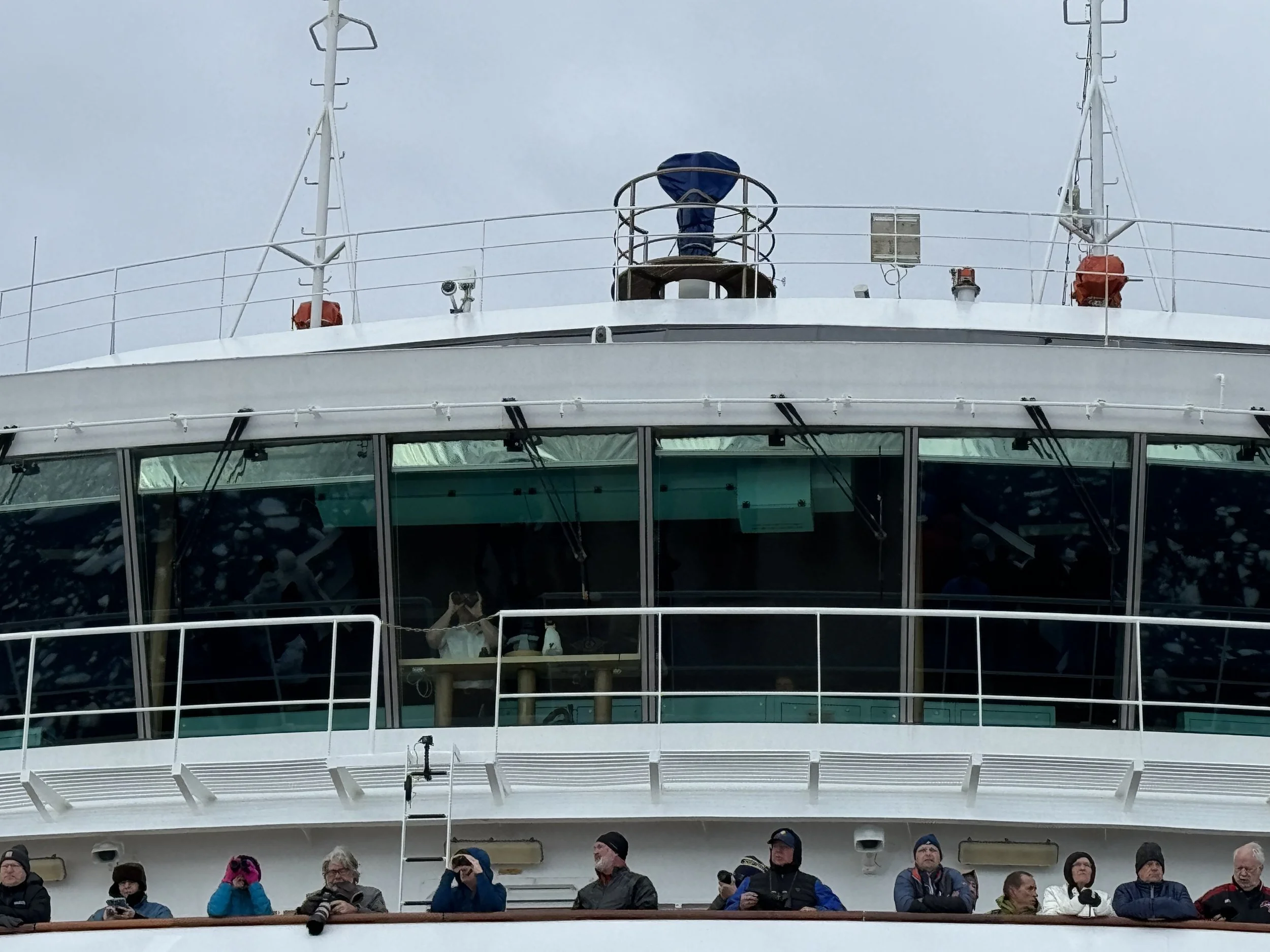 I shot a video of this entire experience, however, due to the wind, and noise of the people standing around us on the bow, it’s not worth posting as you just can’t hear the dialogue like you can in person. It was about 10 minutes of the scientists welcoming us, and the Captain speaking with the scientists, and them giving us some updates on the conditions in the area. They finished with a warning about the impending condition changes we would likely experience and stated they would be readily available for support if needed.
