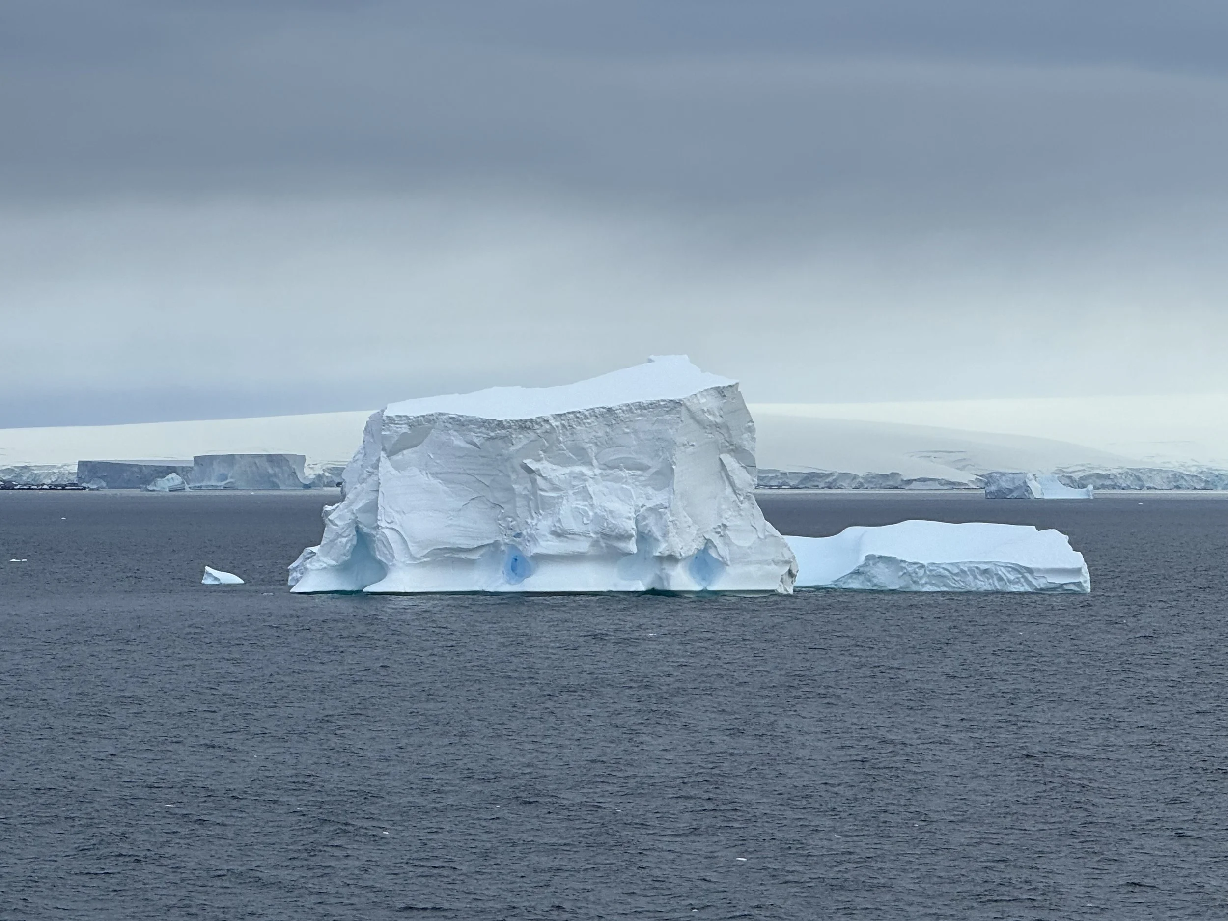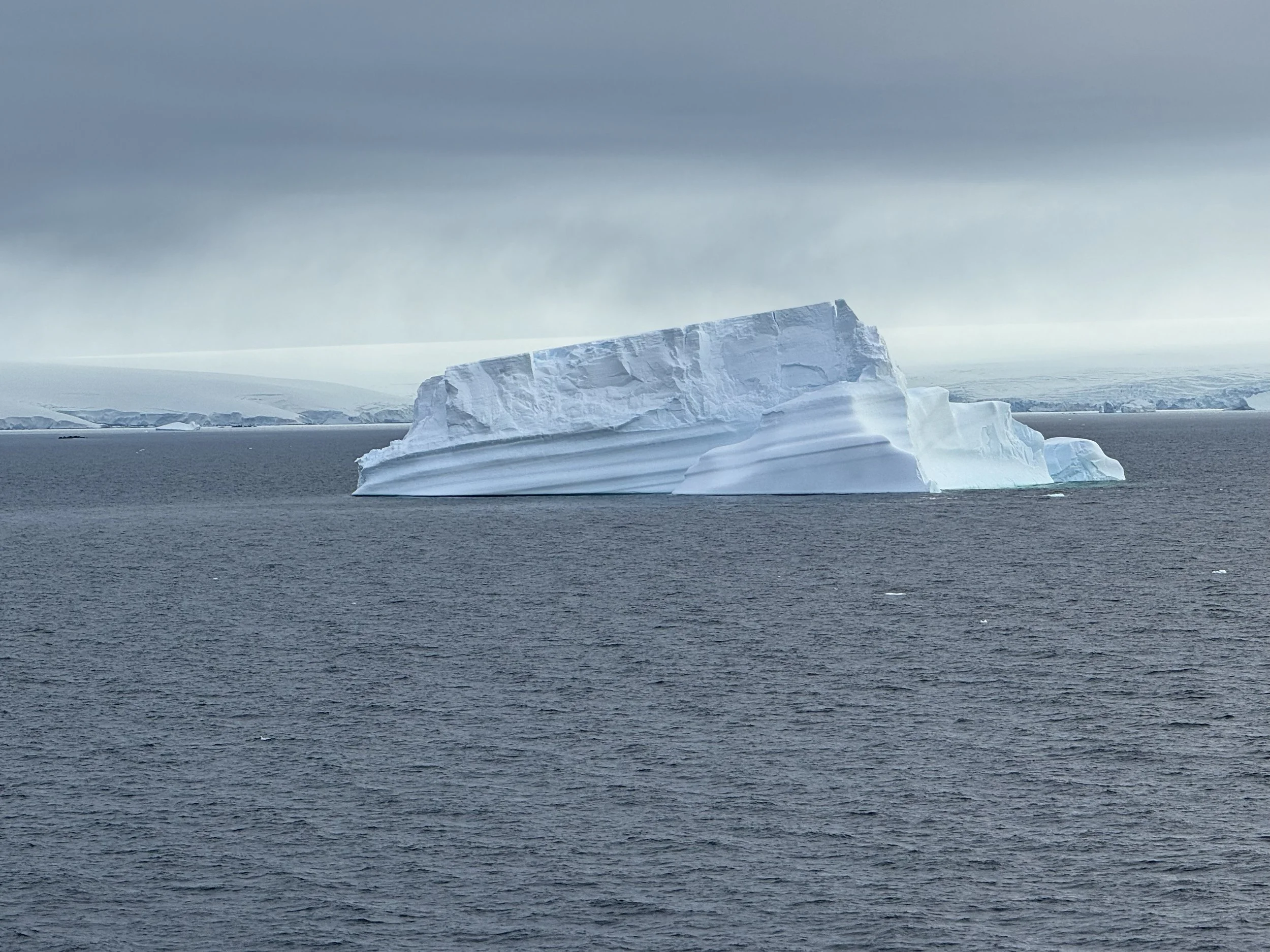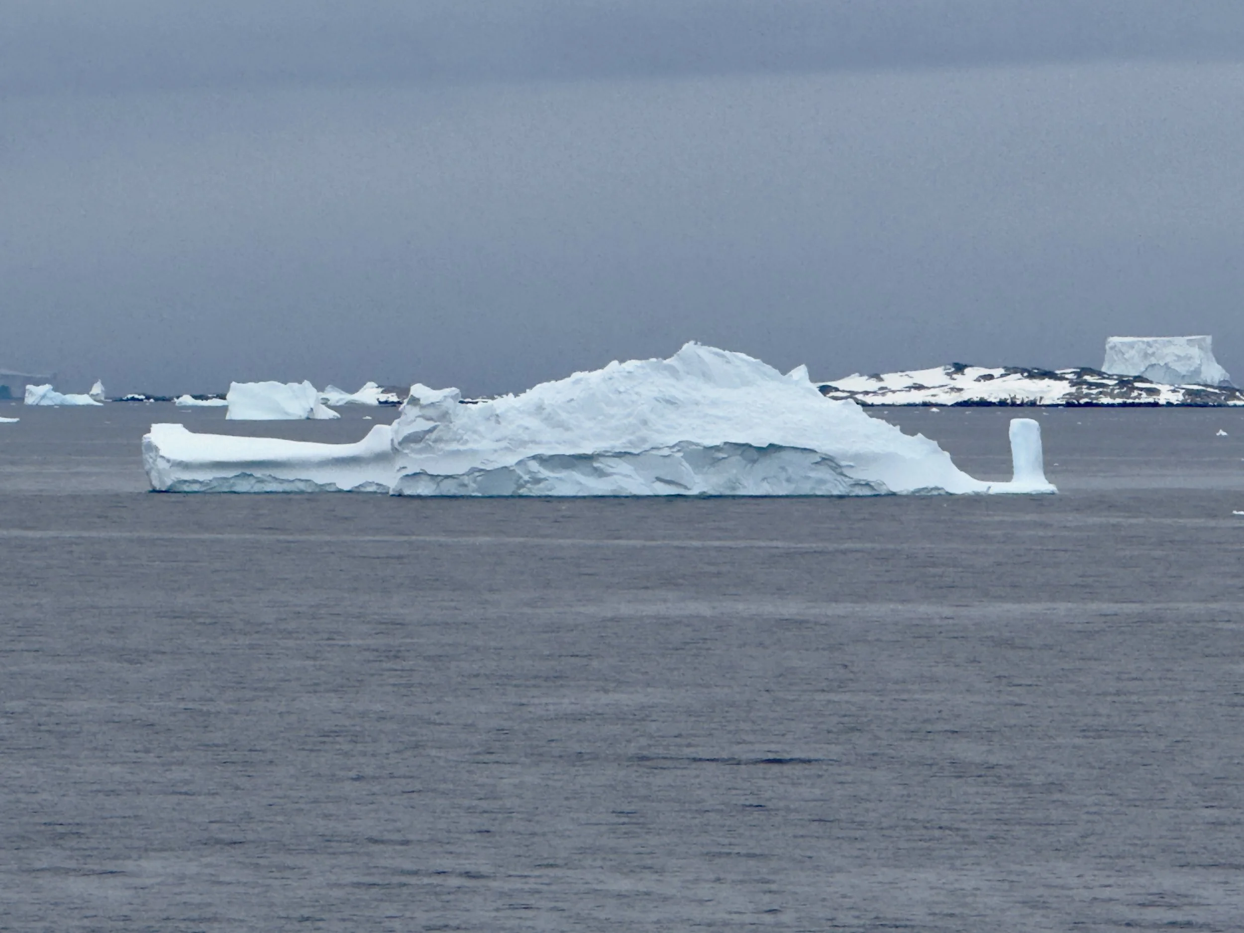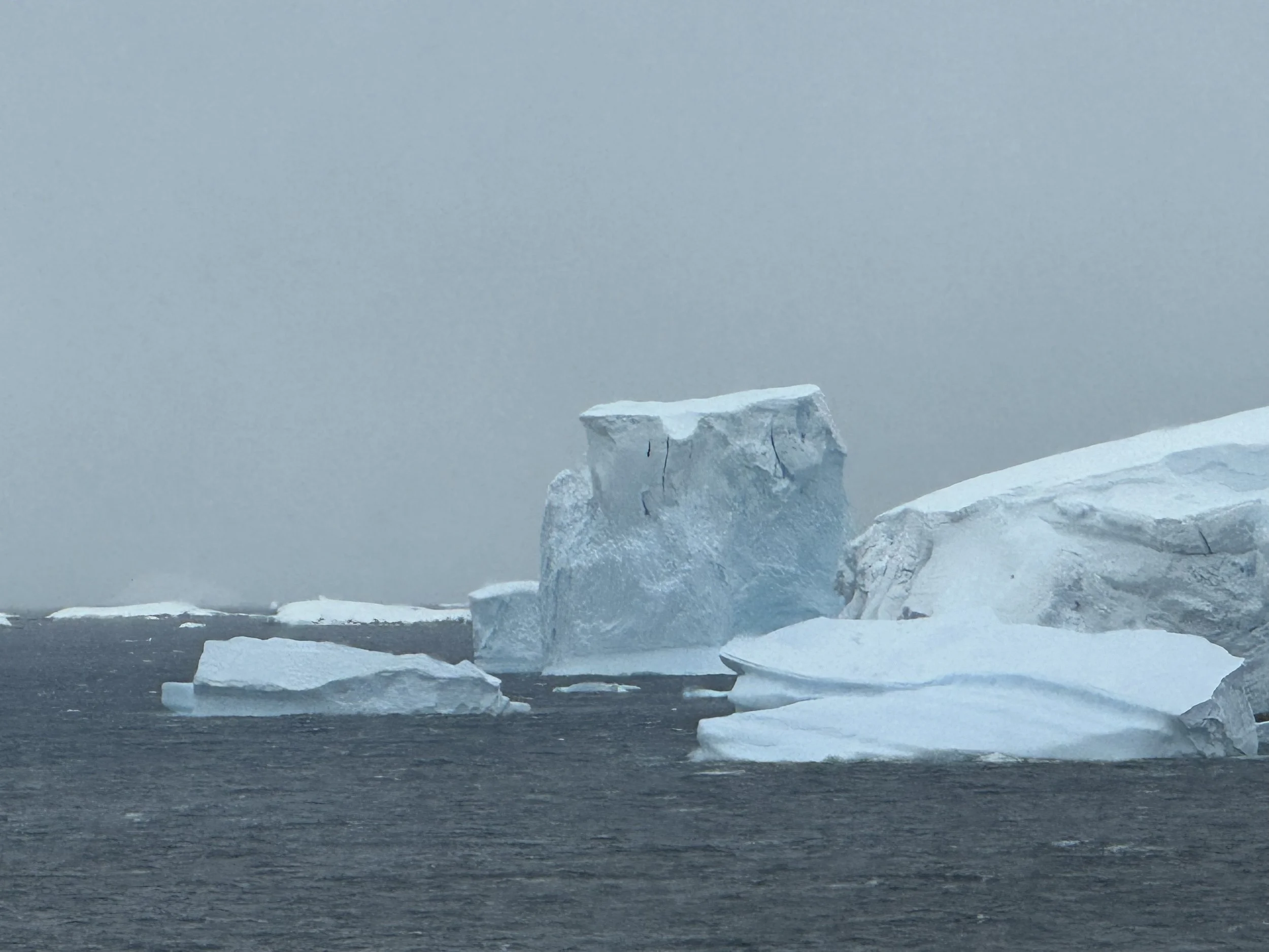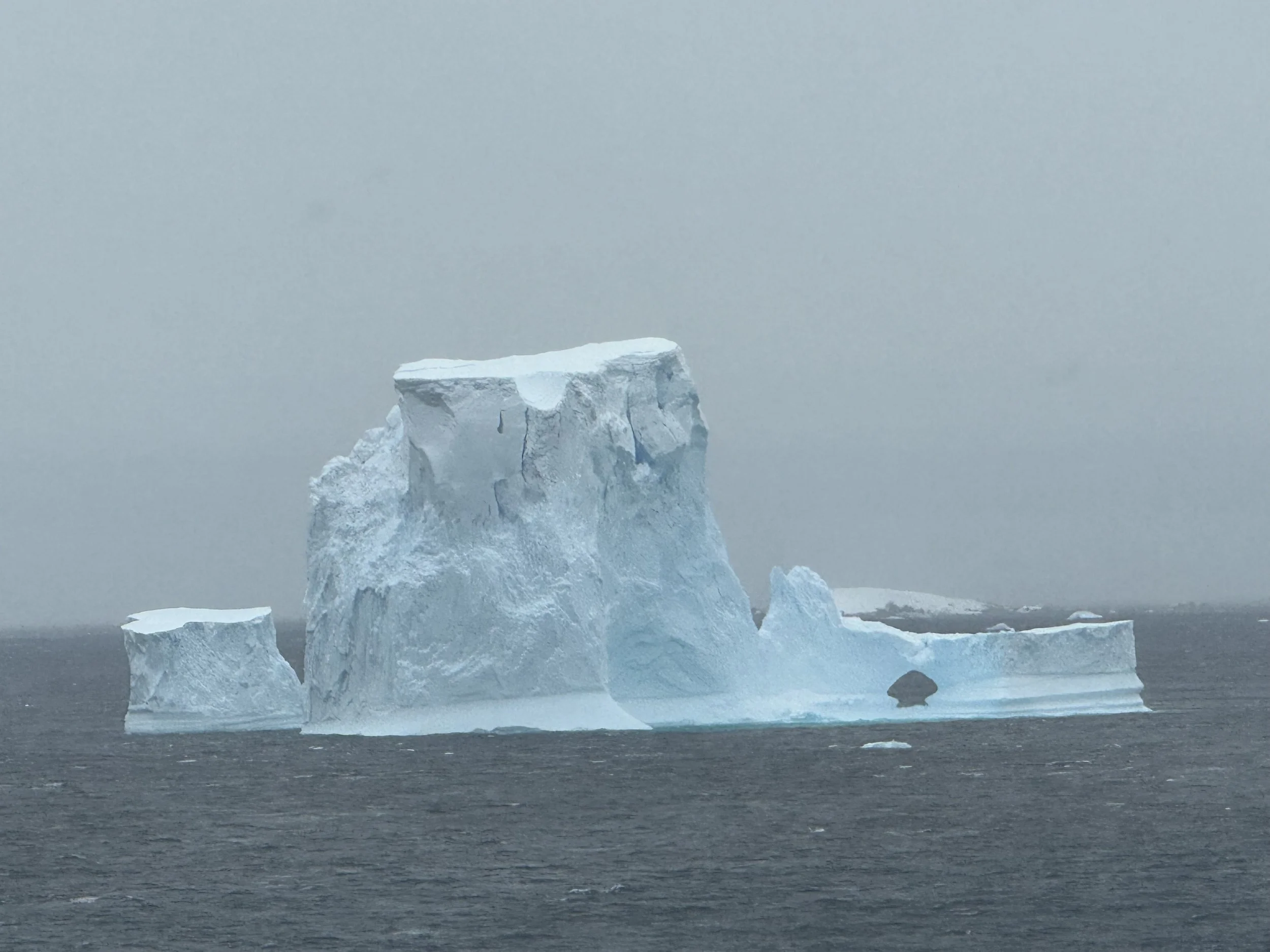 During dinner, it was an eerie sight knowing we were in a fixed position and seeing this iceberg float by the window in the image below. We would learn the next morning that these icebergs were traveling at over 20 km/hr due to the storm.