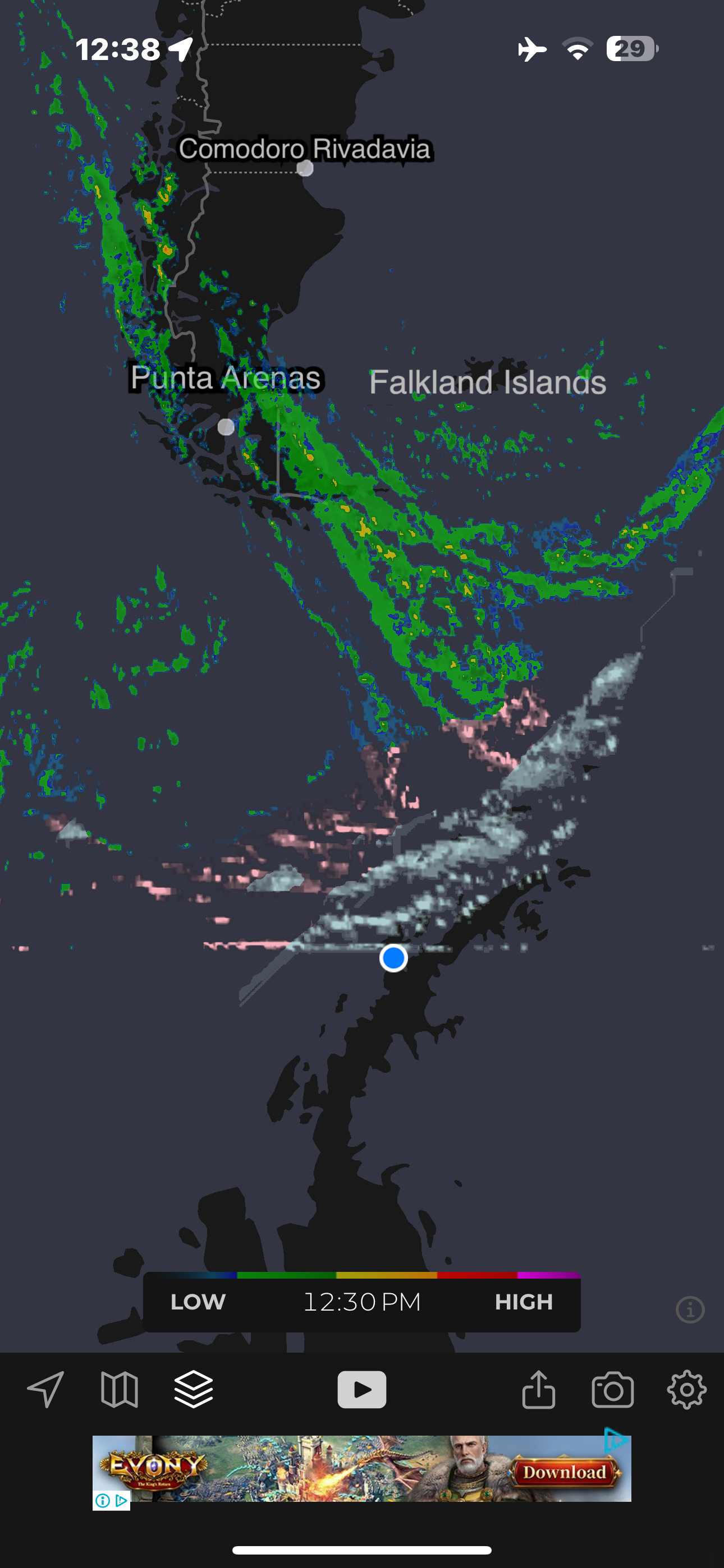 I was able to pull up the radar just after noon and it was obvious the low pressure they warned us about at Palmer Station was intensifying.