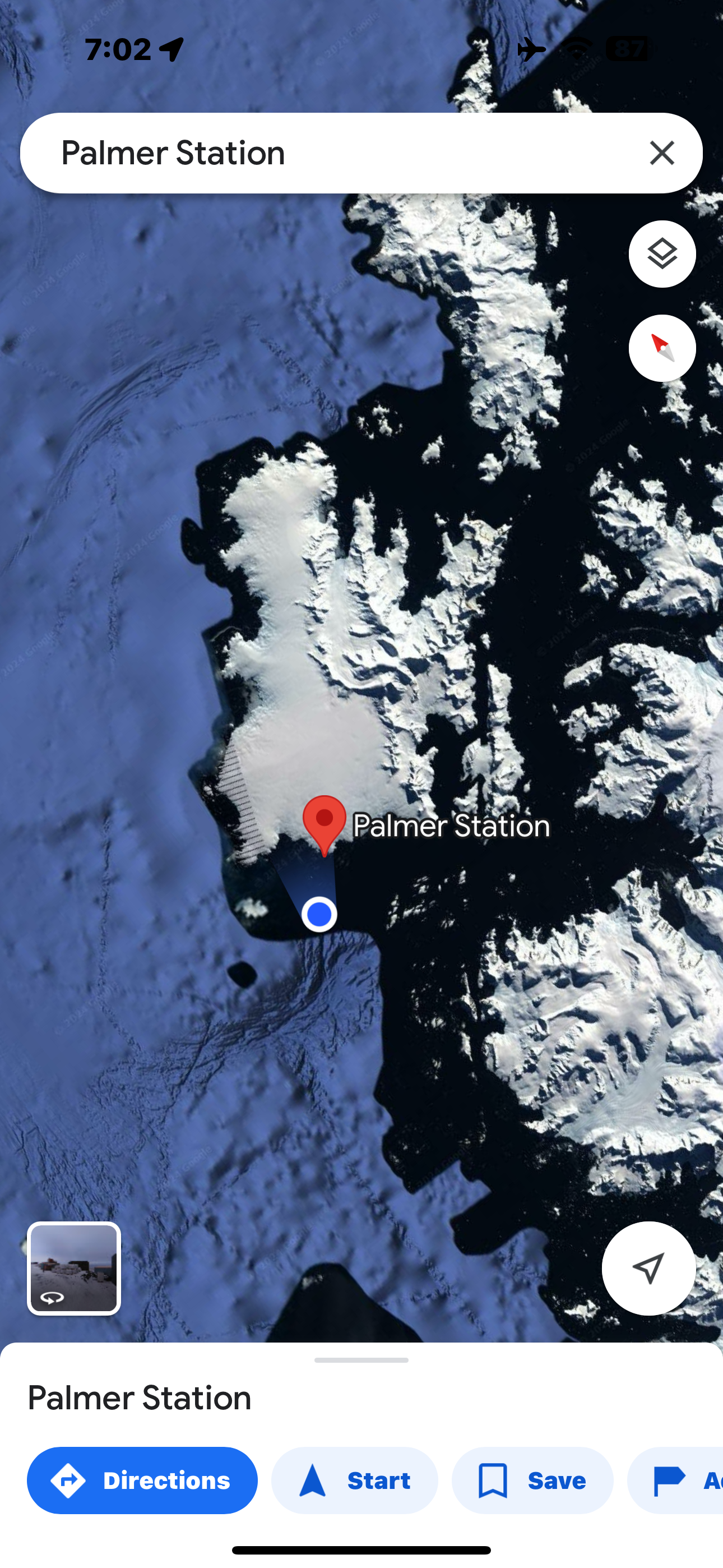 I used google maps to capture our position an hour before arrival at Palmer Station.