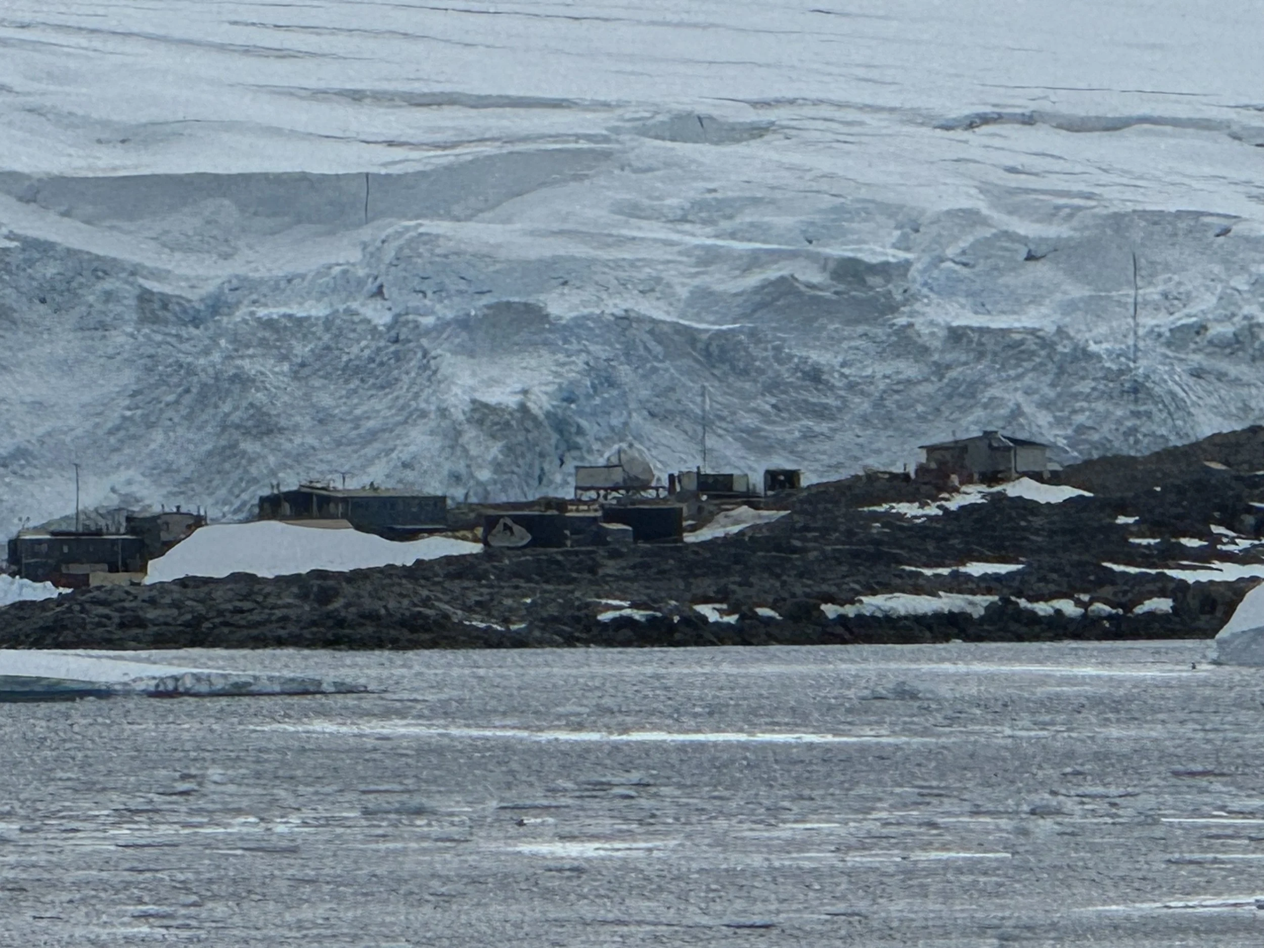 Palmer Station. We’ve arrived. As we arrive we are standing on the bow of the boat as we’re told that the captain intends to open a radio channel with the scientists there and have a conversation that all of us on the bow will hear.