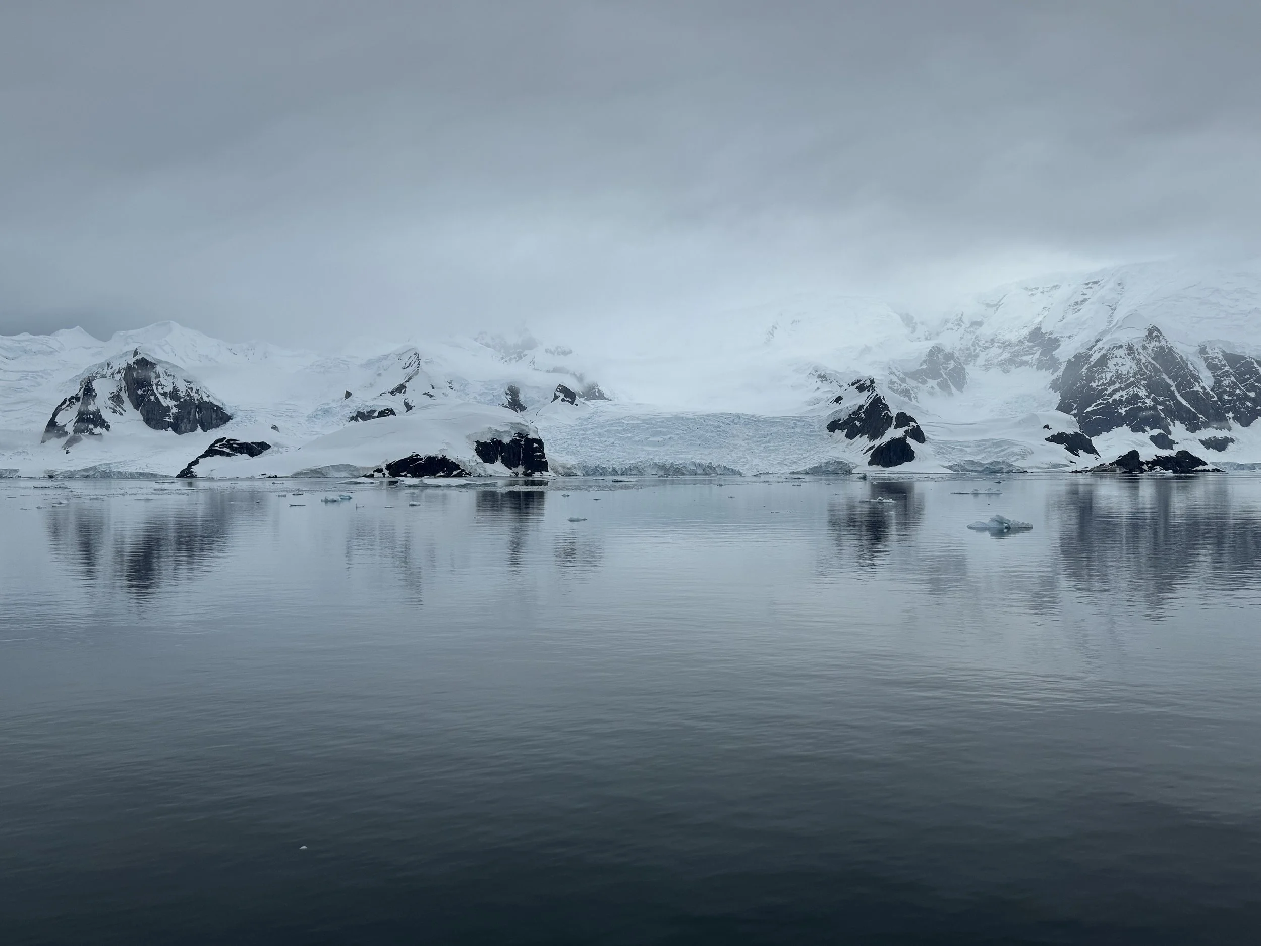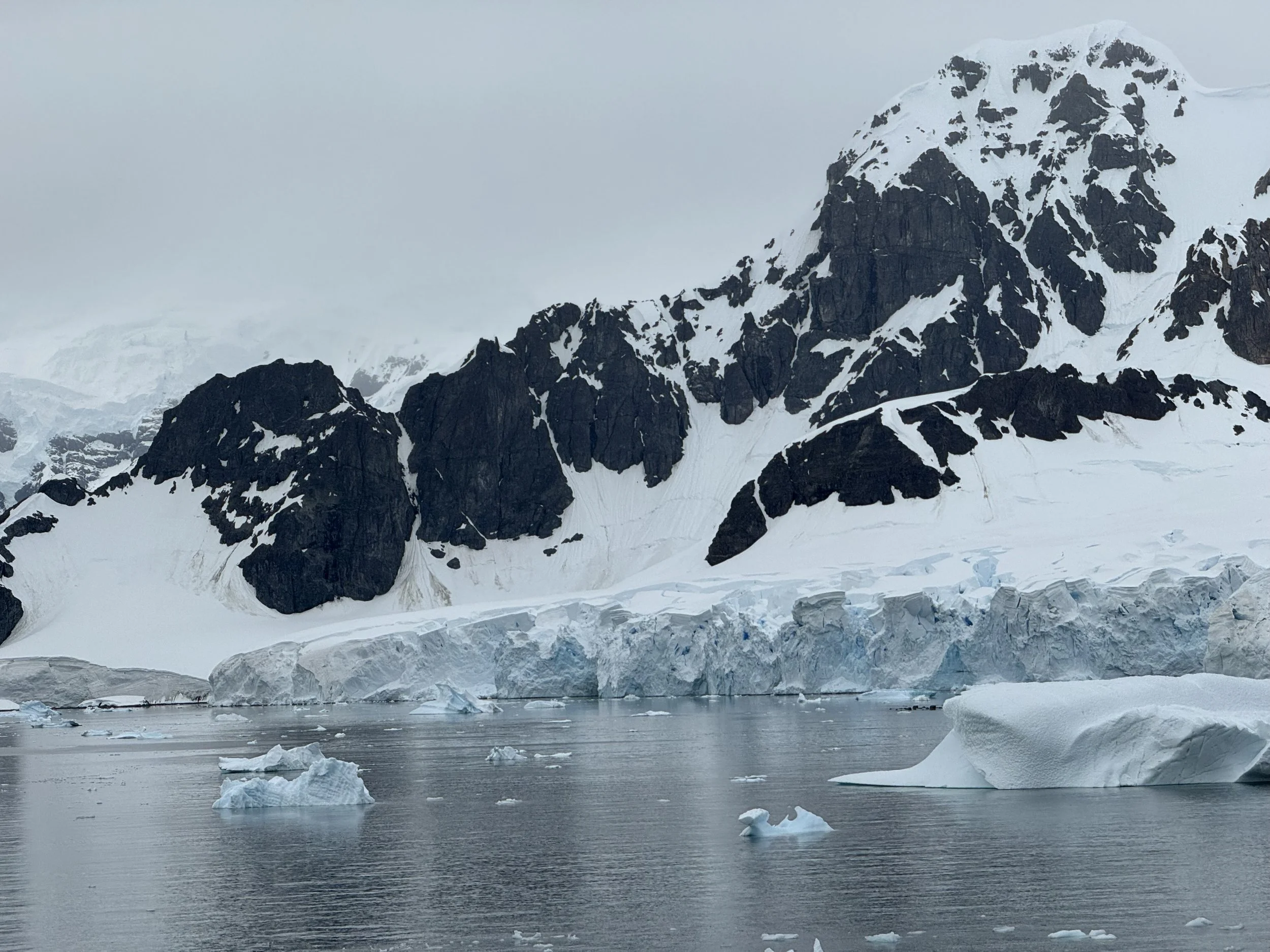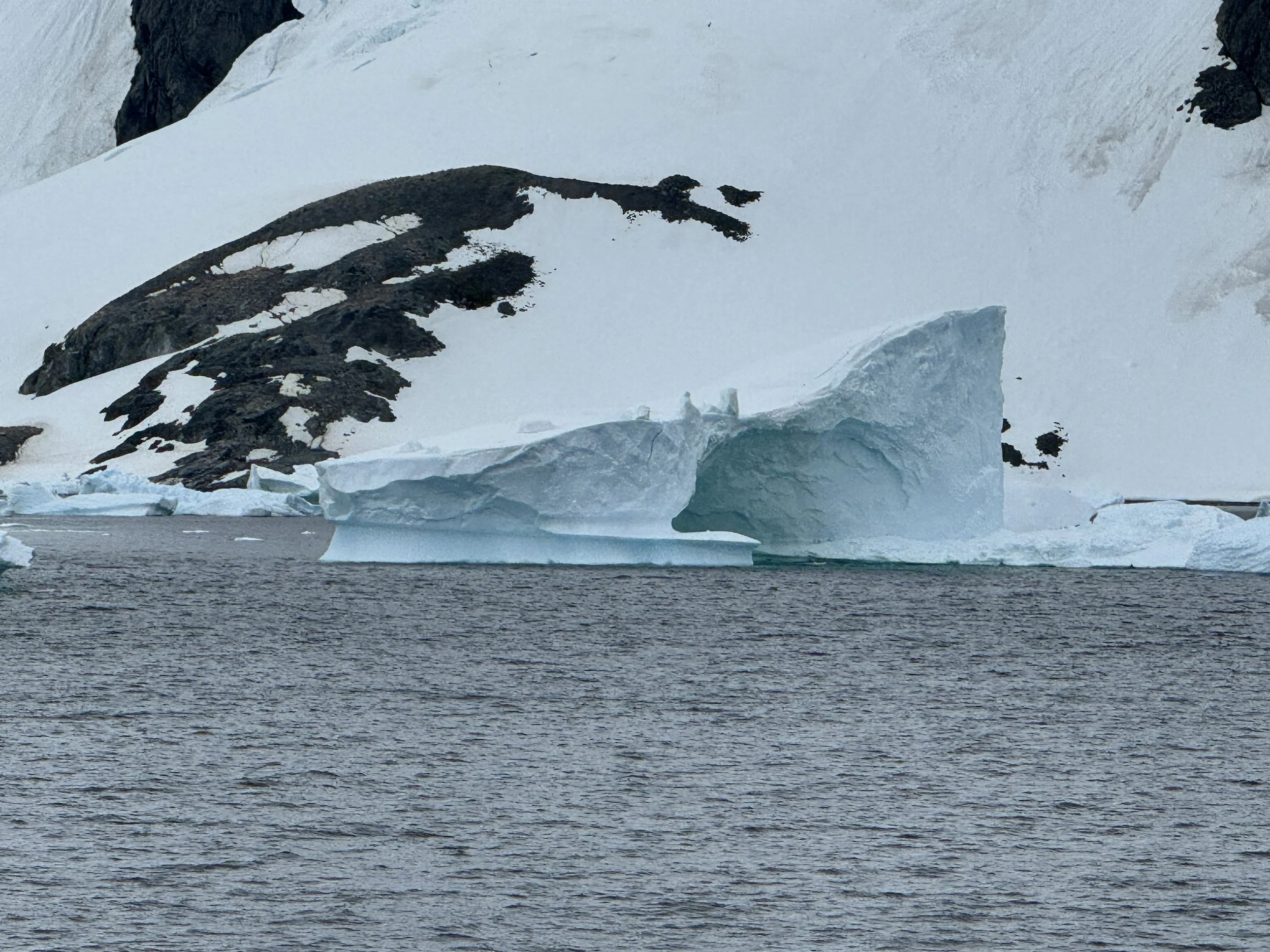 By the time we awake and are listening to his update, the winds are calming but still at 25 mph so he will not be able to attempt Lemaire Channel. It has now filled with icebergs that the ship is unable to navigate through. We will miss it this trip. Instead, he will head to Paradise Bay, which was to be part of our day two experience anyway. He stated that likely by the time we are arrive in the bay, the winds should be fully subsided, and this along with the protection of the mountains around it, it should be beautiful conditions.