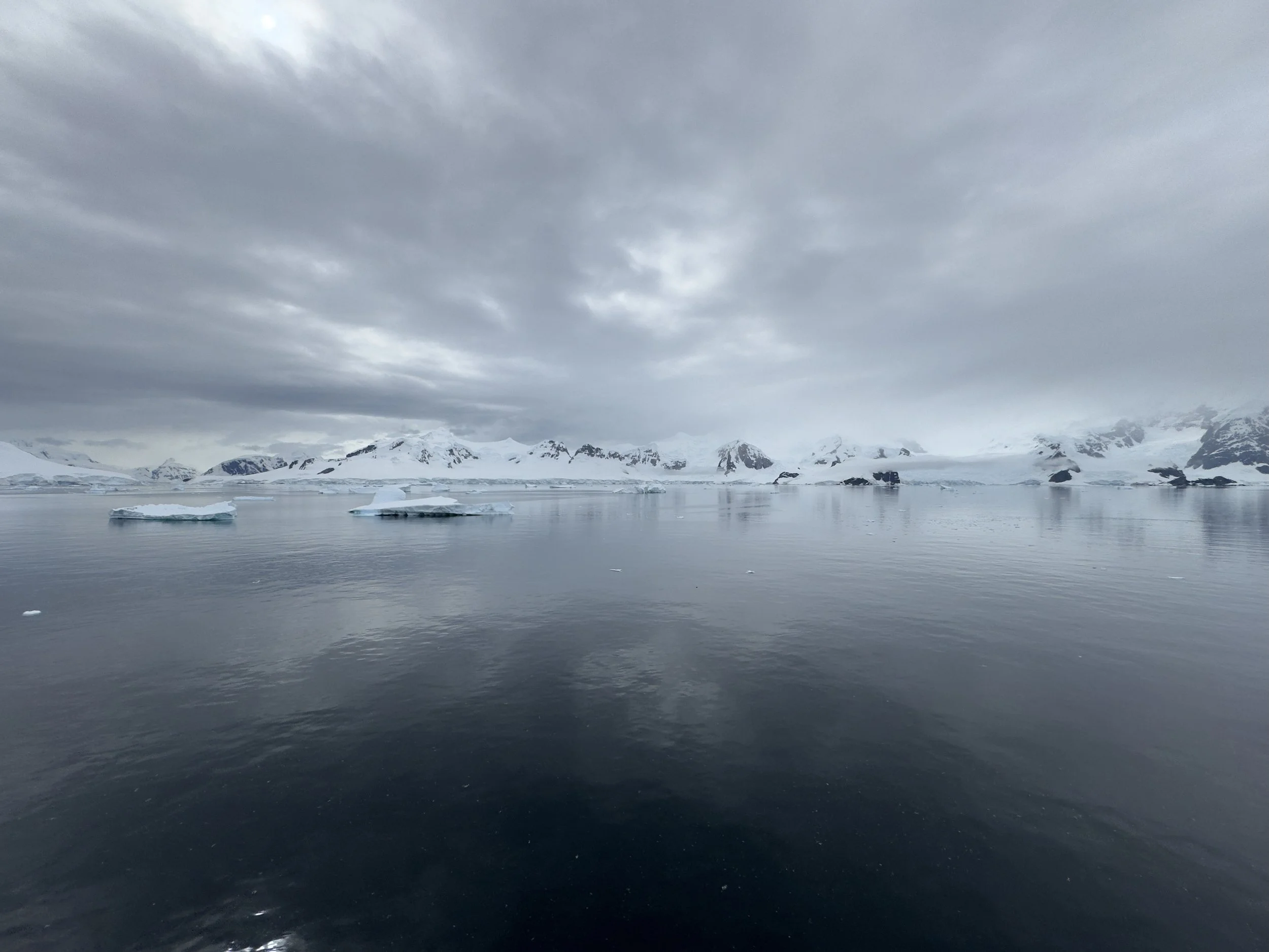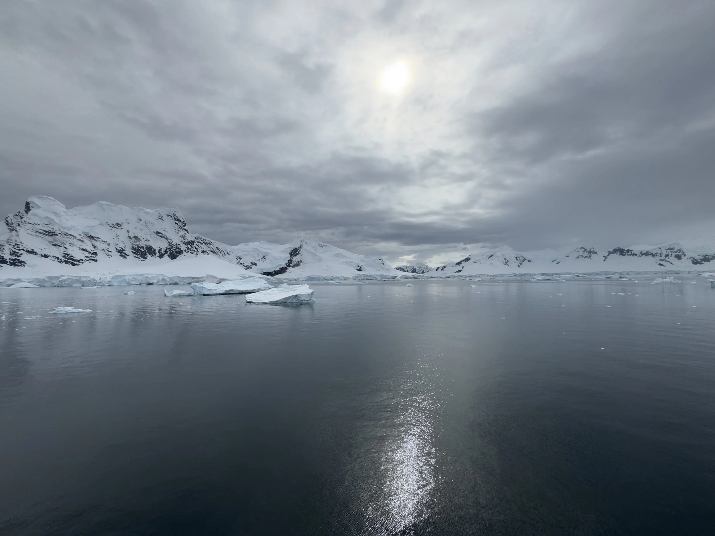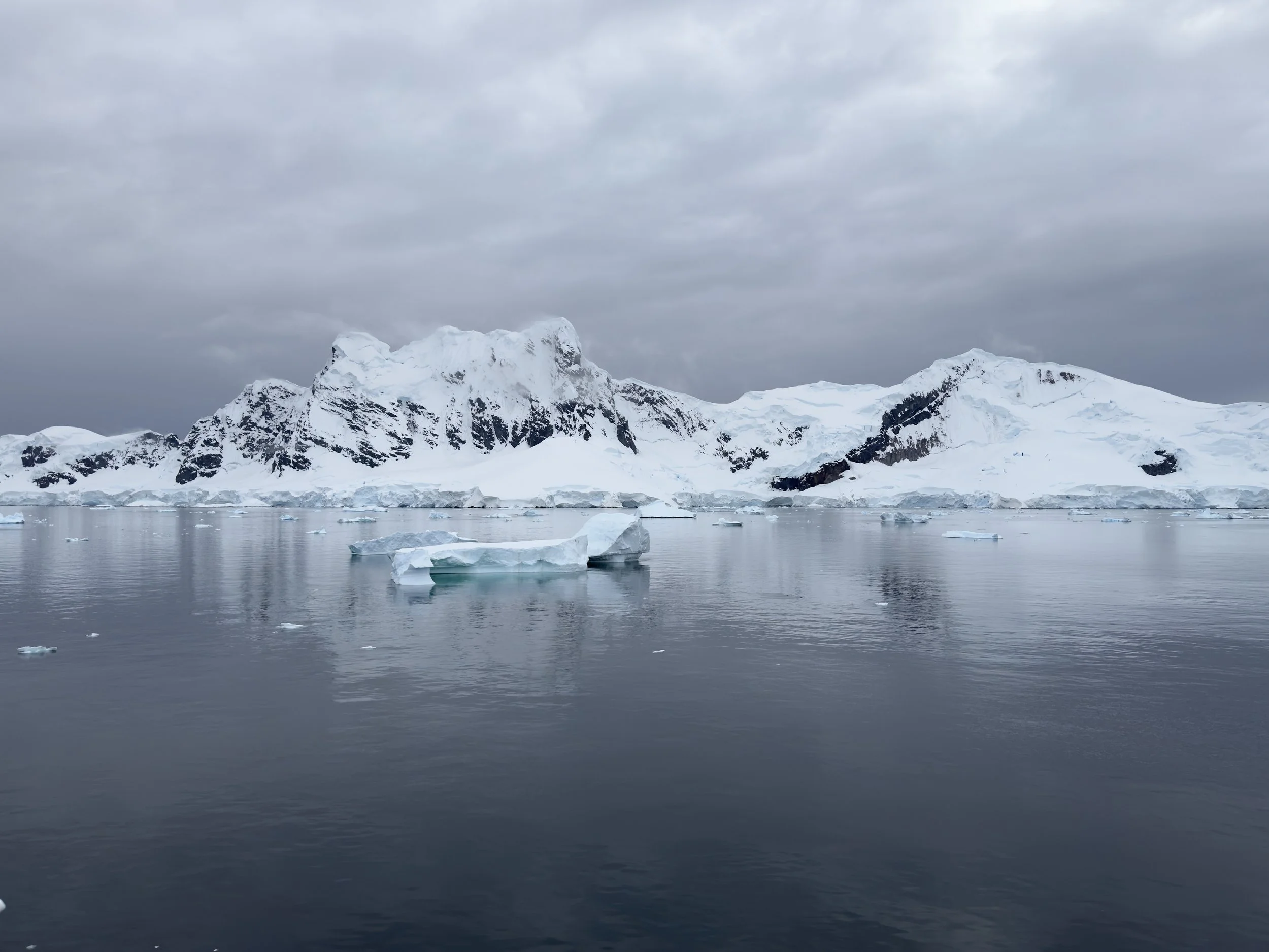 By the time we awake and are listening to his update, the winds are calming but still at 25 mph so he will not be able to attempt Lemaire Channel. It has now filled with icebergs that the ship is unable to navigate through. We will miss it this trip. Instead, he will head to Paradise Bay, which was to be part of our day two experience anyway. He stated that likely by the time we are arrive in the bay, the winds should be fully subsided, and this along with the protection of the mountains around it, it should be beautiful conditions.