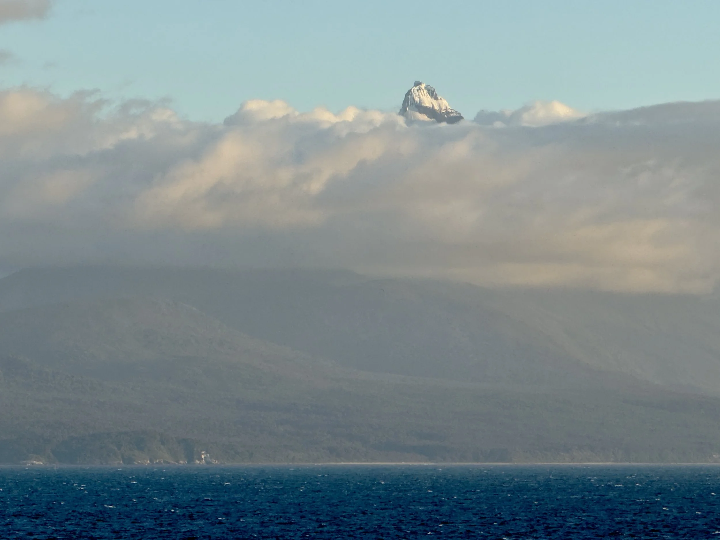 The first scenic view from our balcony. One of the tallest active volcanos in Chile captured above the clouds.