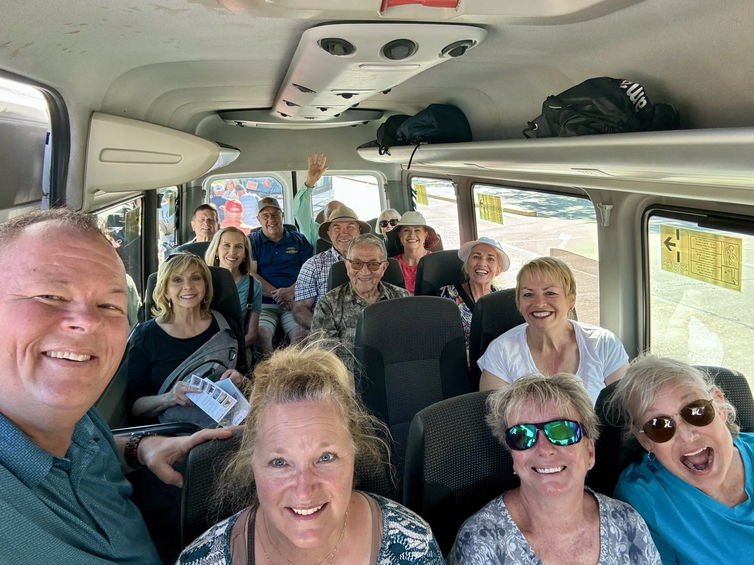 Before our first stop, I decided a rare selfie group pic of our new-found friends was in order… Jim & Lisa, Karen N, Shelley, Steve & Karen, Mark, and of course, the family!