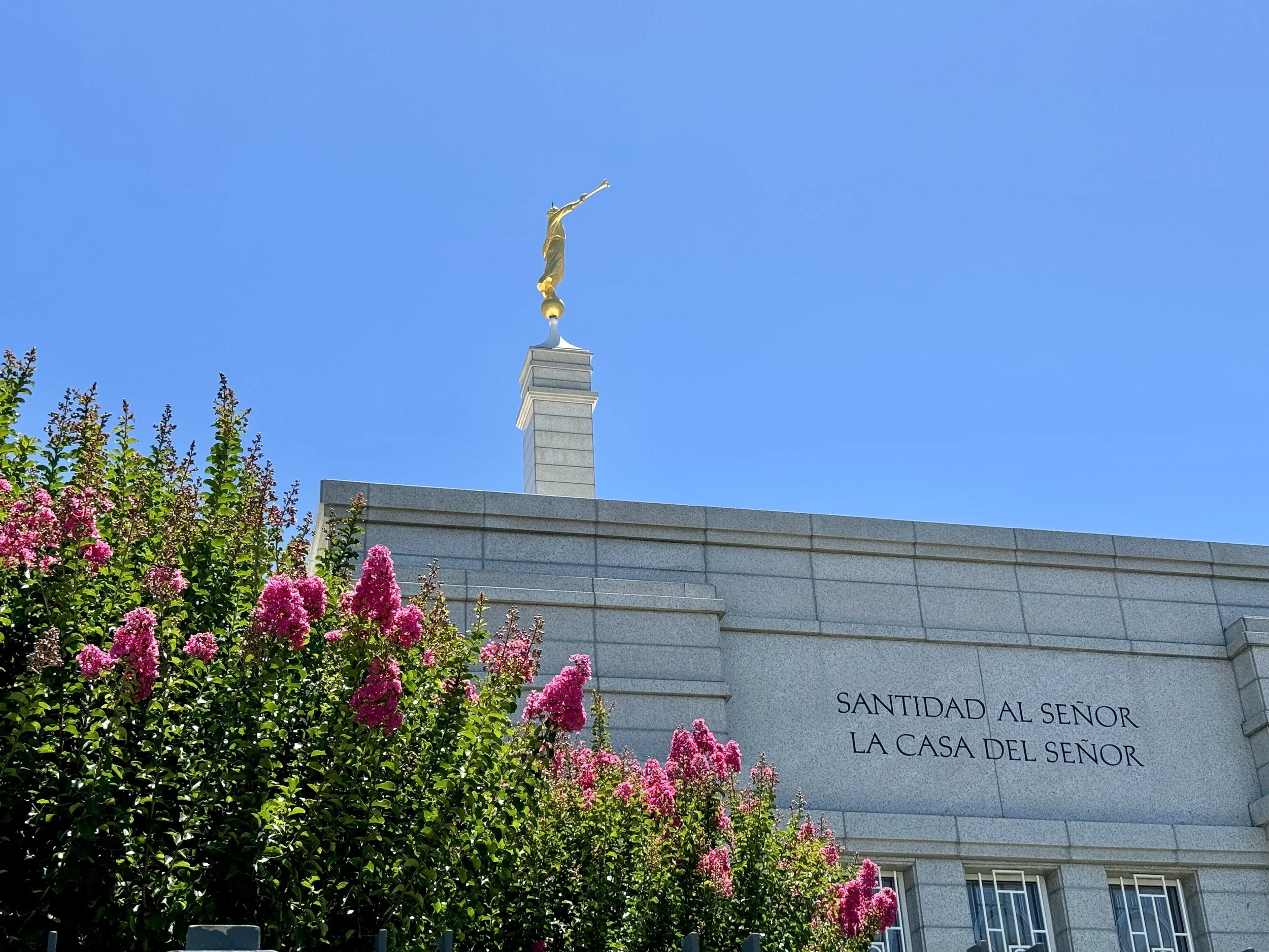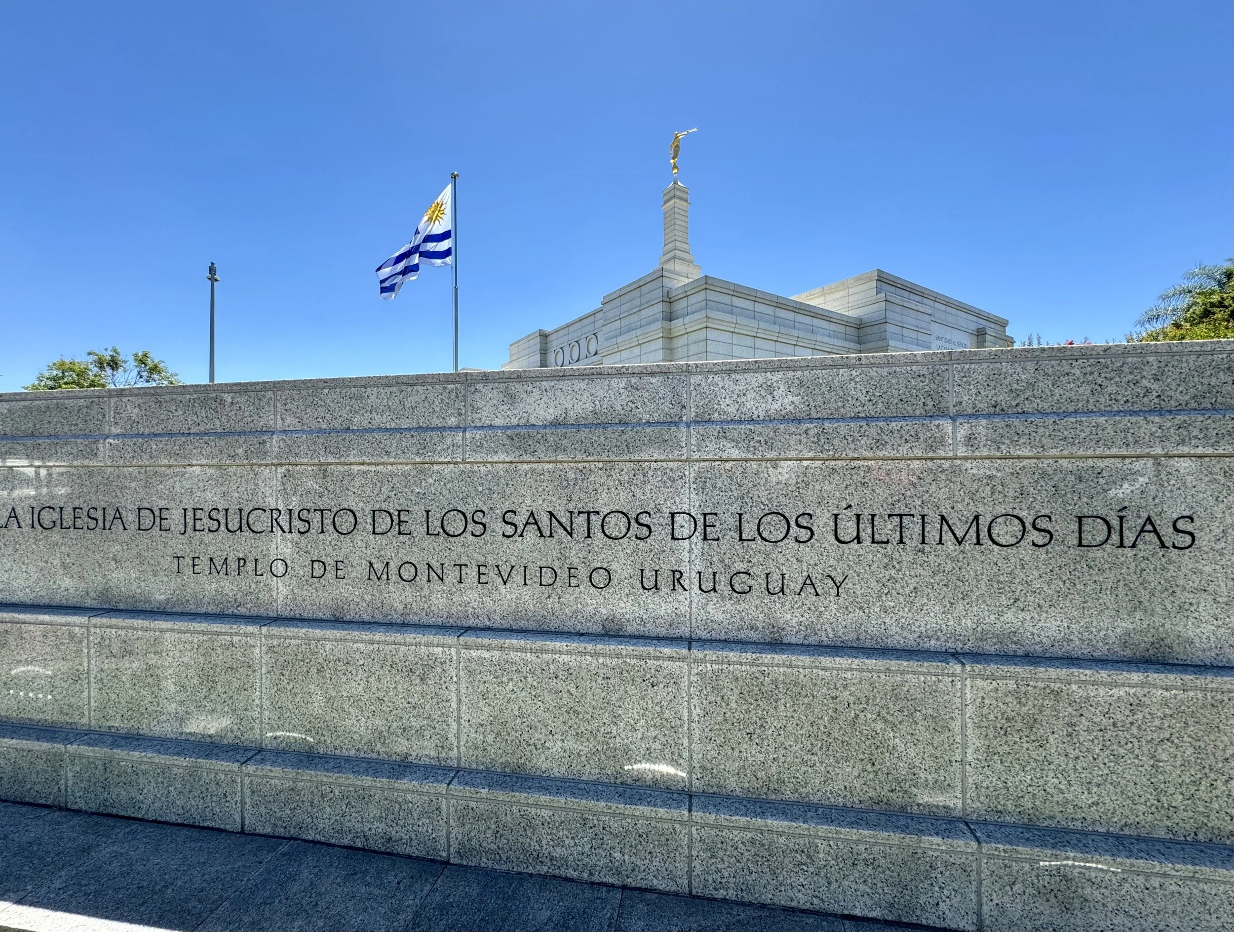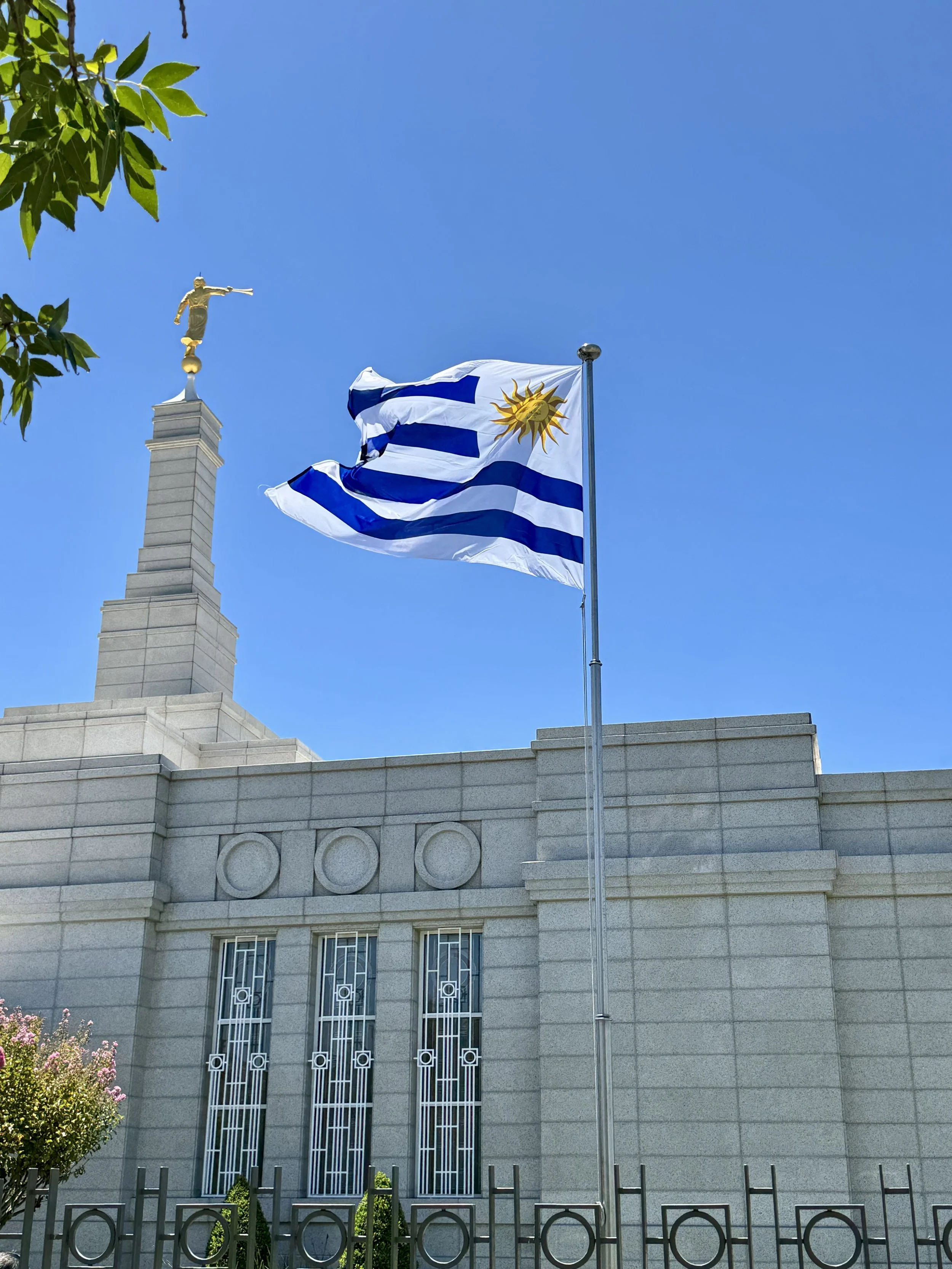 We arrive at the temple with the Angel Moroni shining, and the Uruguayan flag flying.