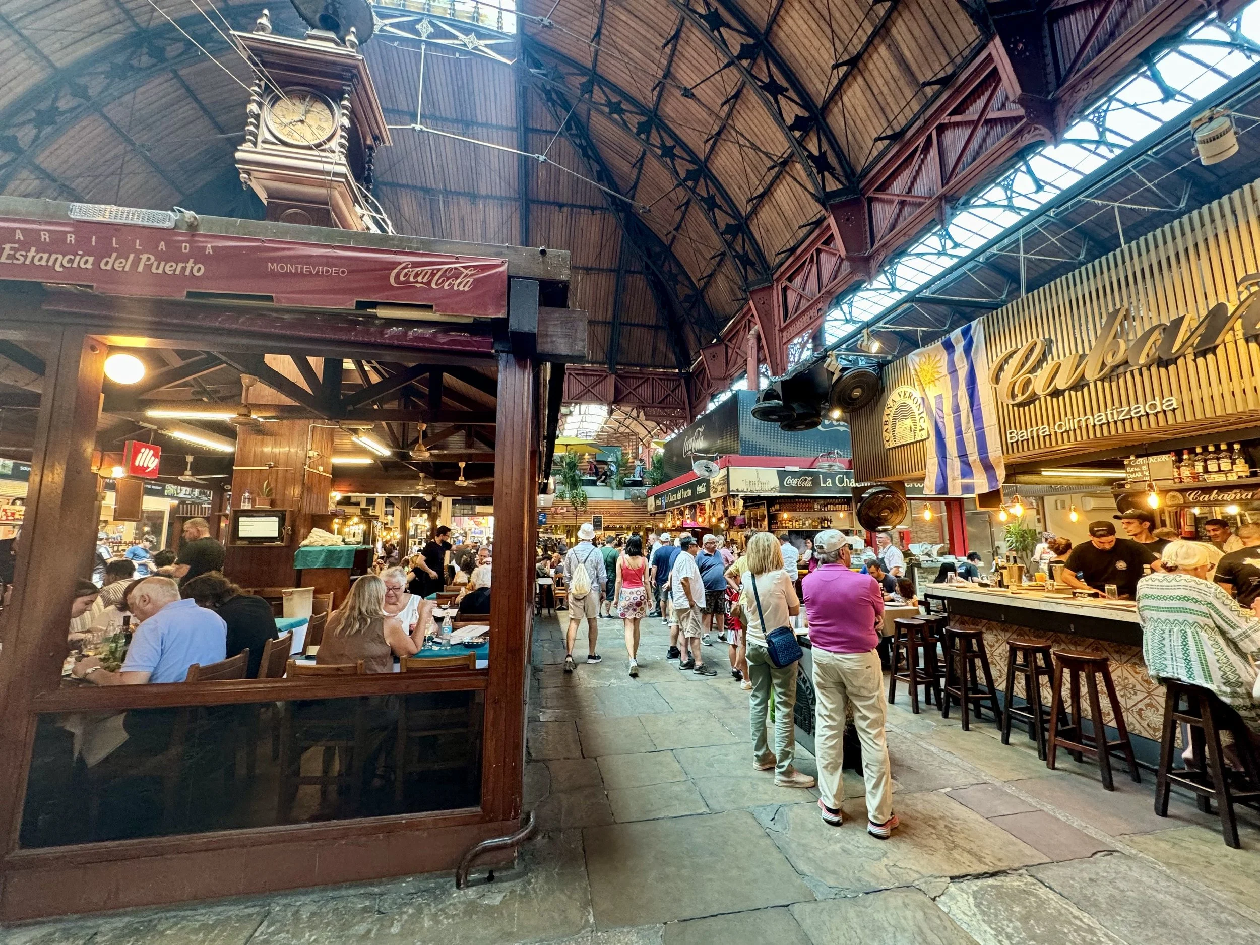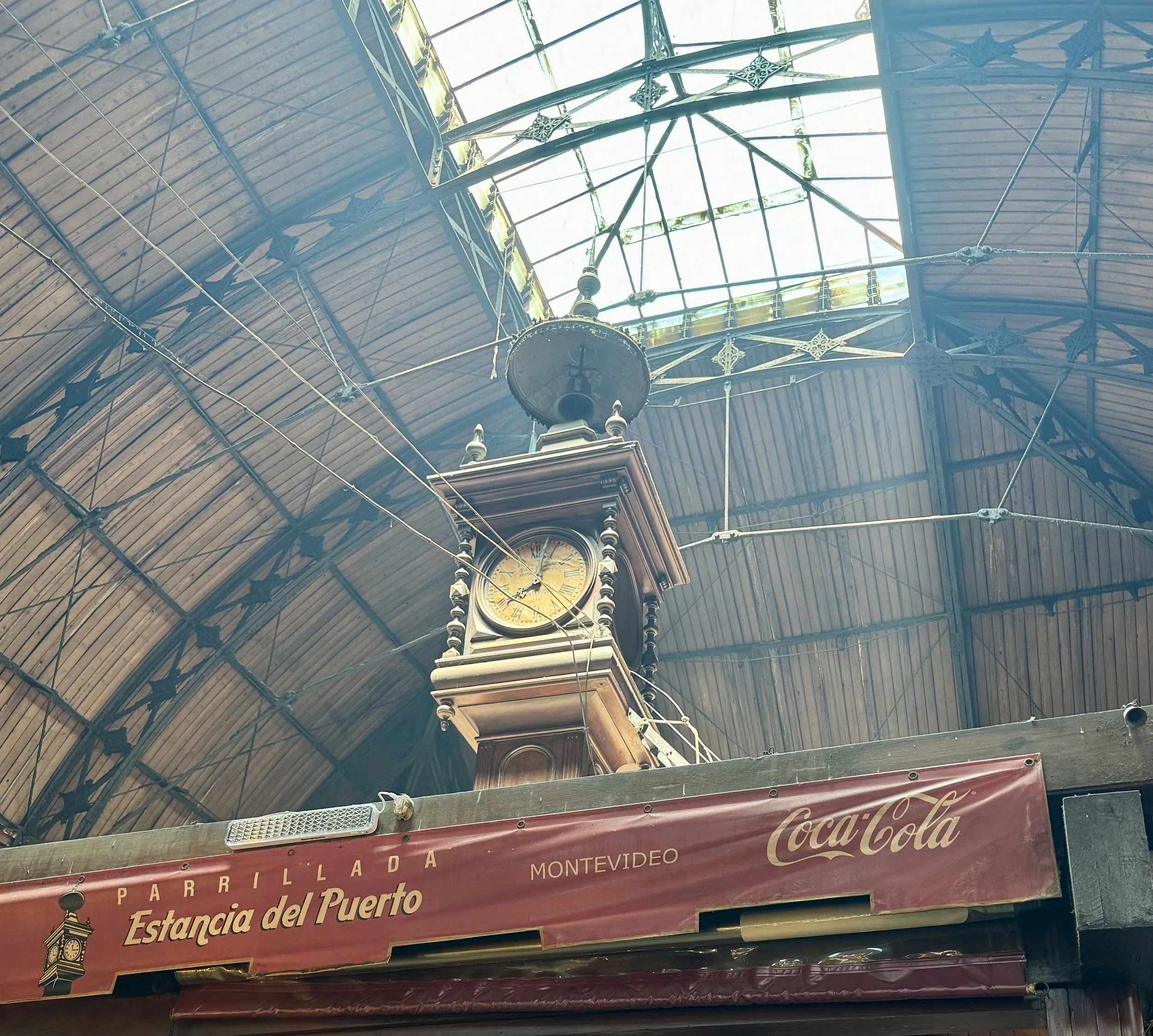 The clock located here (that I loved, obvious in the many pictures below) is almost as famous as the building itself. Constructed, like the entire market, in England and then shipped to Uruguay, the clock dominates the central hall of the cast-iron building. Now this market building houses amazing shops and popular restaurants serving typical Uruguayan dishes and we’re about to partake.