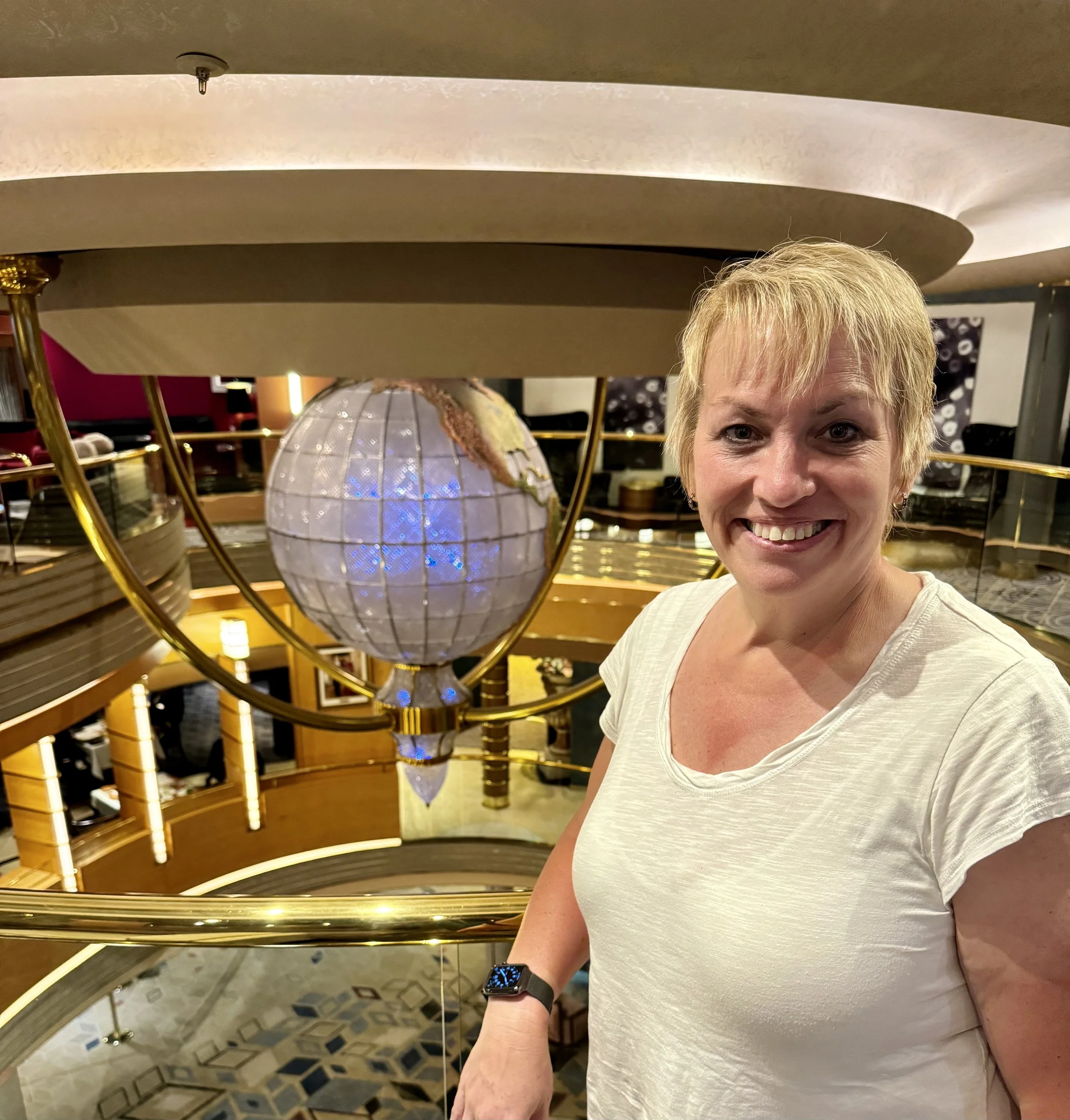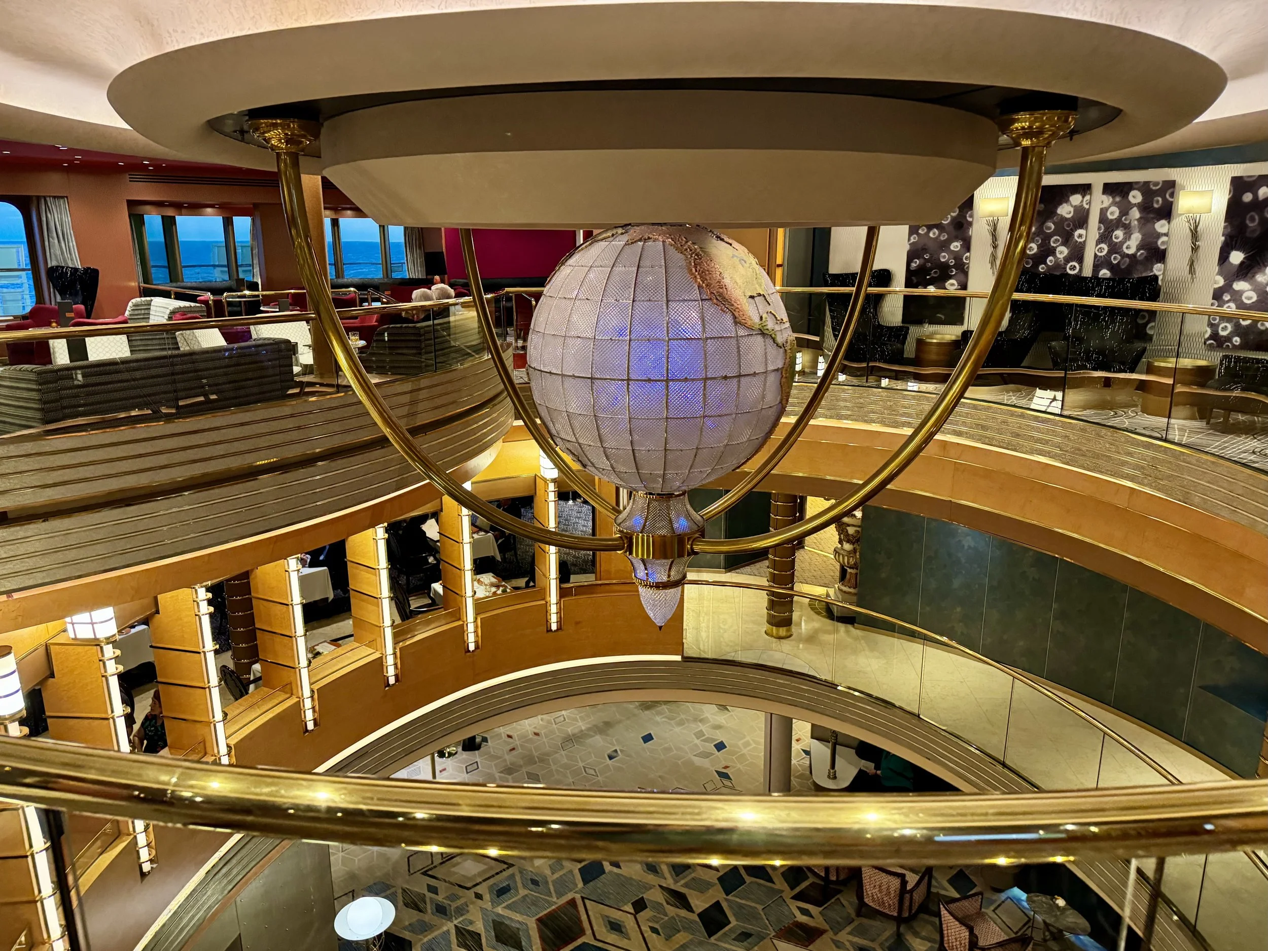 As we return to the ship, we walk through the top of the 3-story atrium where a giant Waterford crystal globe (the heart of the ship) hangs from the ceiling, representing the 140 years of travel by Holland America. This is the largest Waterford crystal globe ever created and is many feet in diameter, and hundreds of pounds in weight, so you can only imagine how much it’s valued at when a 13 inch globe from Waterford currently goes for $30,000.