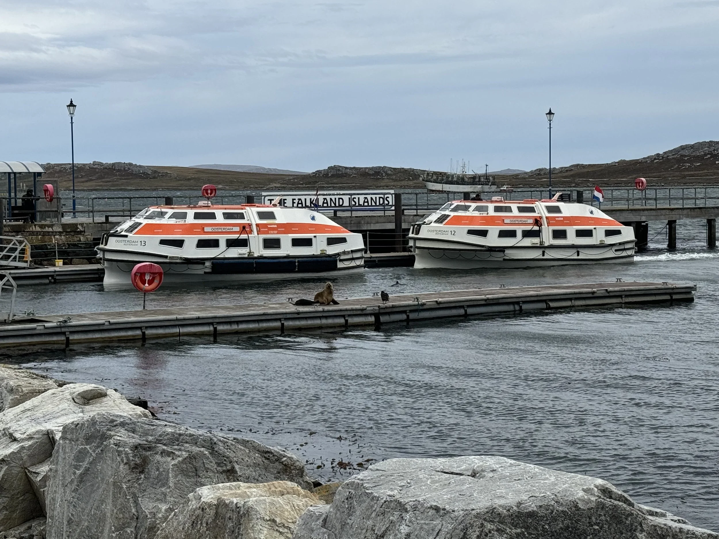 As we approach the dock, my last wildlife video of the day… a sea lion and her pup cuddle up on the dock. And that’s a wrap for The Falkland Islands adventure. The ship was able to stay in the bay as wind gusts were above 30 knots all day but never hit sustained at 30 knots. Thank you. Really, Mother Earth, thank you.
