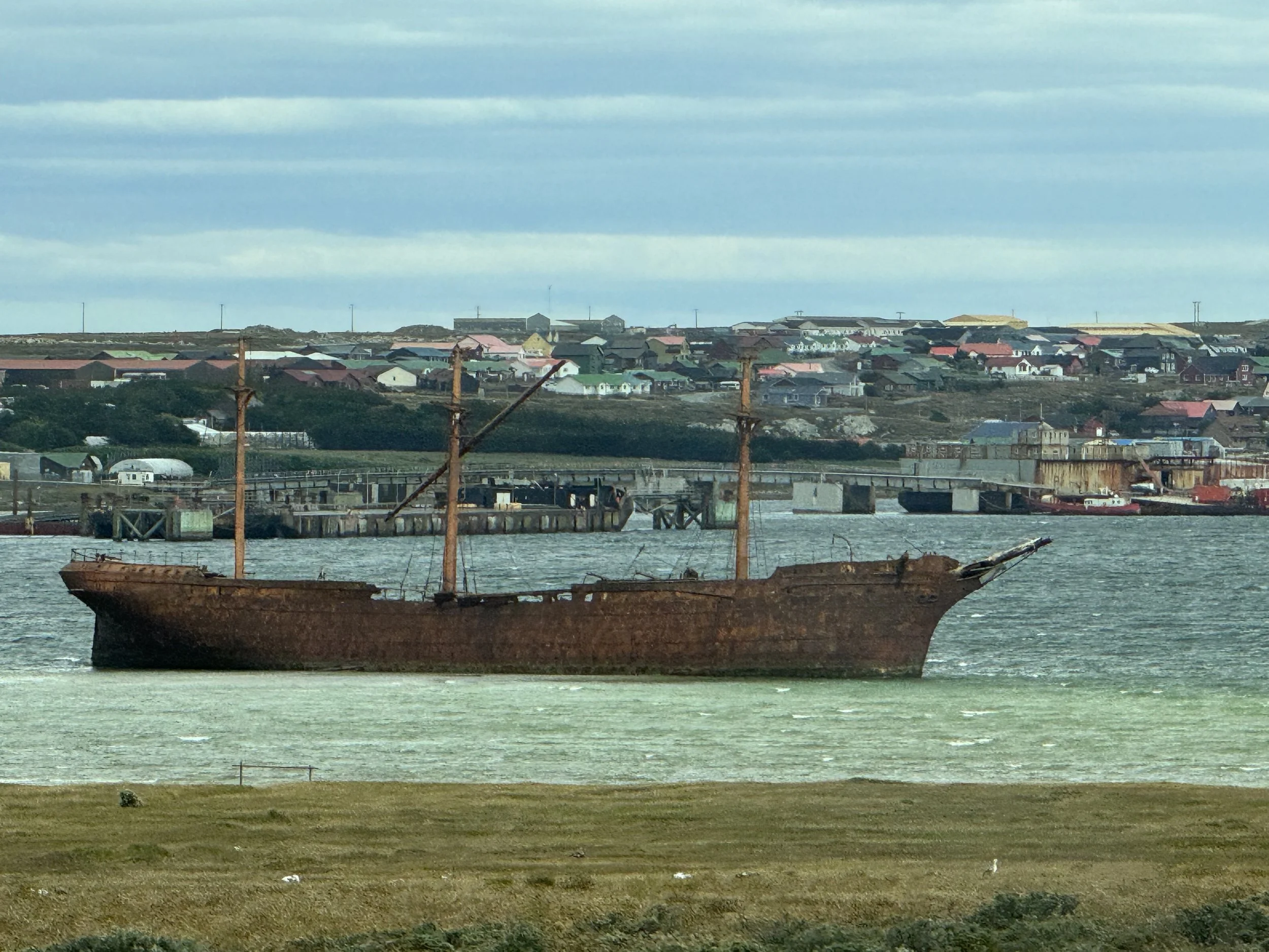 On the shuttle ride back to Port Stanley we spot Lady LIz which was built in 1879 and sustained severe damage sailing around Cape Horn in 1912 and headed towards Port Stanley for repairs. However, she struck Uraine Rock just off Volunteer Point and suffered a 6-foot (1.8 m) break in the hull and keel along with a 1-foot (30 cm) hole. The ship began to sink but was able to get to Port Stanley and was then declared unseaworthy. She was moored in Port Stanley until 1936 when her lines broke during a storm and she drifted into Whalebone Cove which is where she still sits today, as I captured here.
