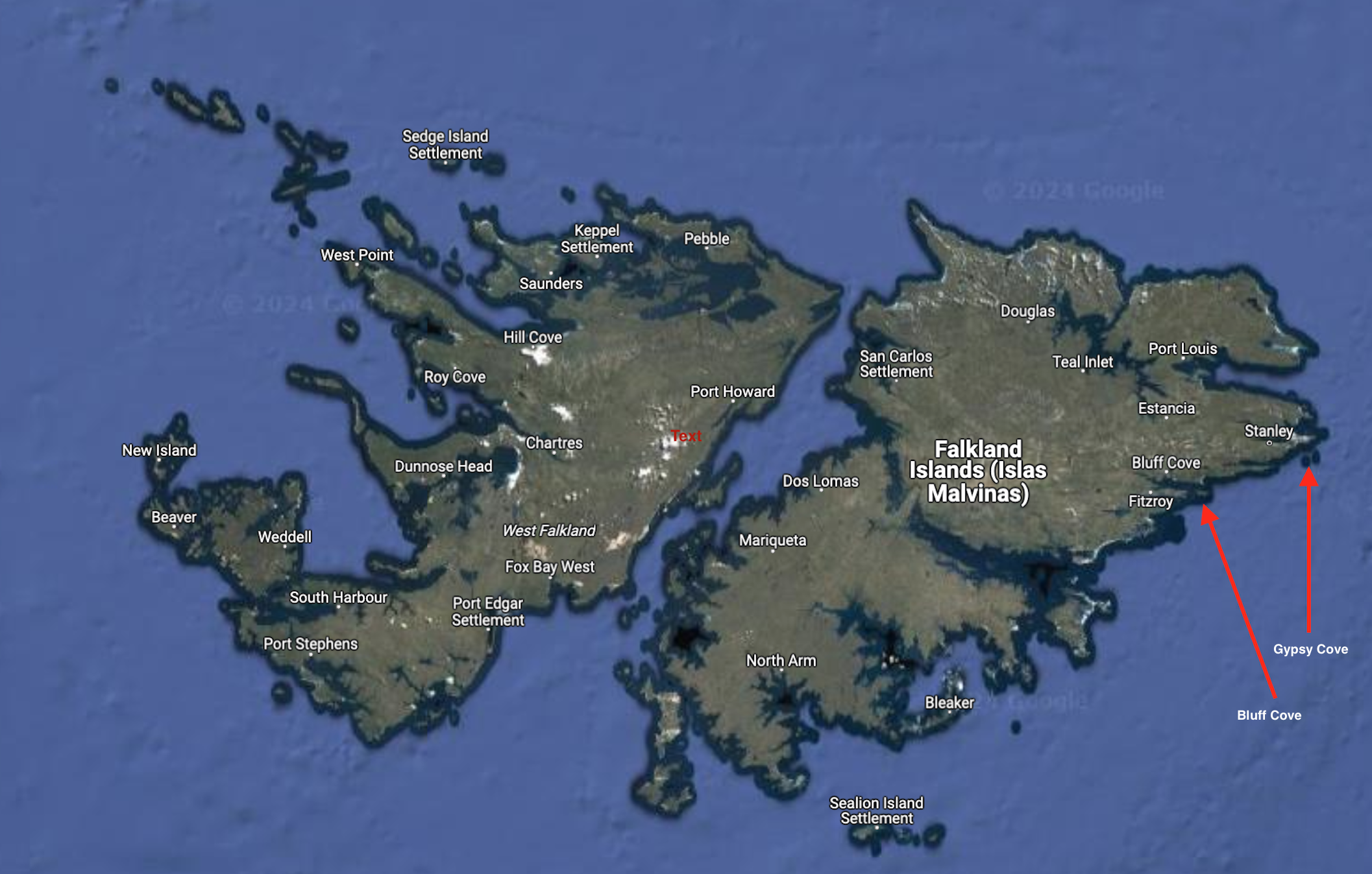 Bluff Cove is a small part of a 35,000-acre sheep and cattle farm owned by Hattie and Kevin Kilmartin which is also a private wildlife reserve and haven to over 3,000 Gentoo penguins and a growing colony of King penguins. It’s about a 30 minute drive from Port Stanley through the countryside with the last several miles down dirt roads.